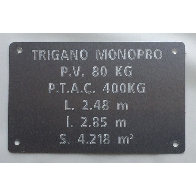 plaque d'immatriculation, plaque de tare Plaque d'identification à riveter remorque MANDRINOISE personnalisation en ligne 11,98 € Plaque de tare matière ALUMINIUM ANODISÉ 0,5 mm épaisseur Gravure une face 4 perforation trous 3 mm, dimensions environ 86 x 55 mm coins arrondis View