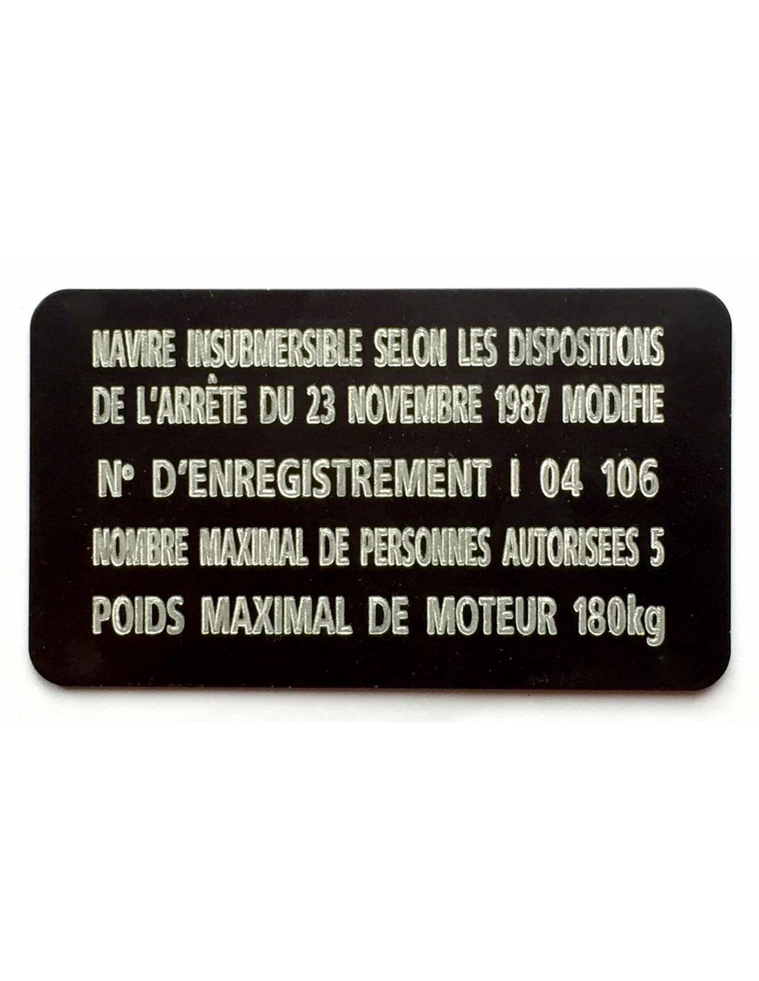 plaque d'immatriculation, plaque de tare Plaque de Tare glastron mx/gx personnalisation en ligne 11,99 € Plaque de tare matière ALUMINIUM ANODISÉ 0,5 mm épaisseur Gravure une face 4 perforation trous 3 mm, dimensions environ 86 x 55 mm coins arrondis View