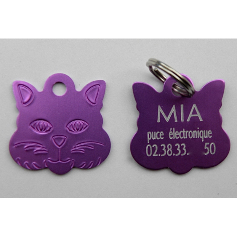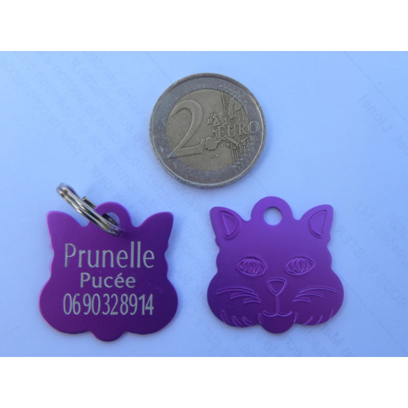 Médaille "TETE DE CHAT" violette pour chat gravure 1 face