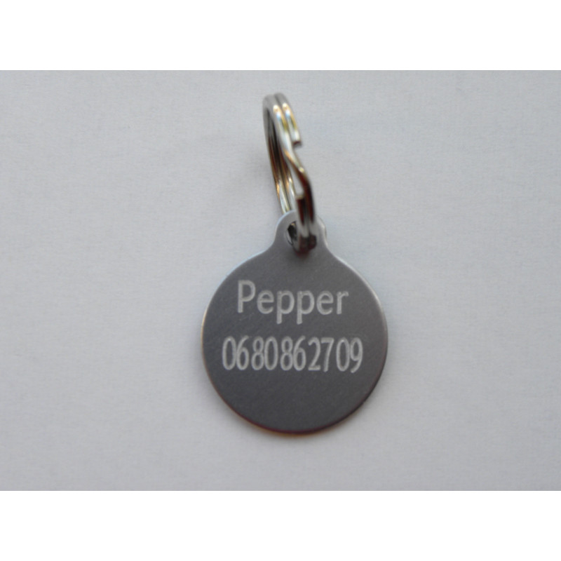Médaille ronde 19 mm argentée pour Chaton, Chiot gravure 2 faces