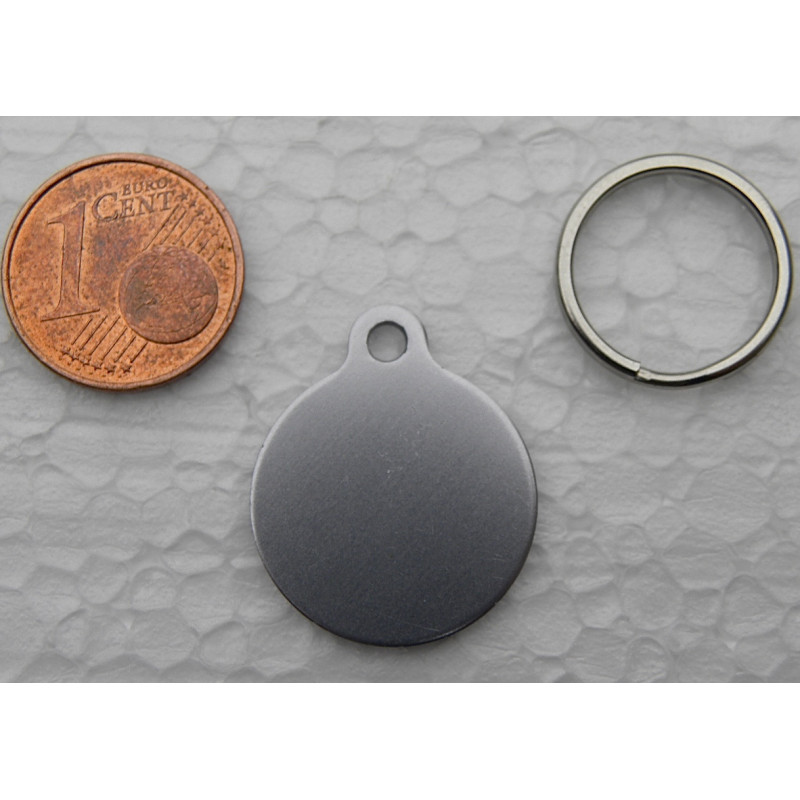 Médaille gravée ronde noire 19 mm "tête de mort" pour chaton, Chiot gravure 1 face