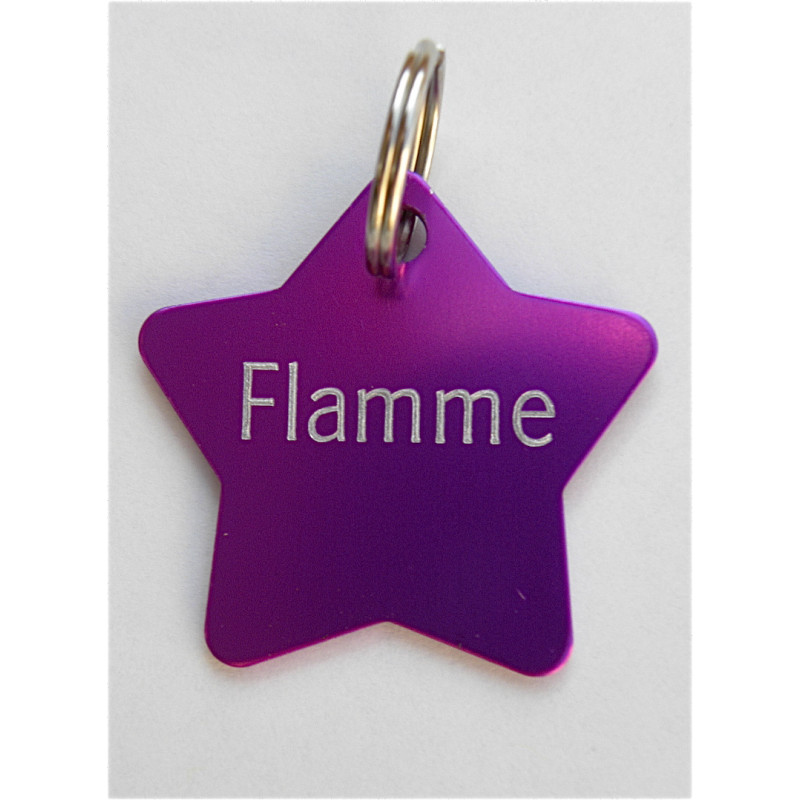 Médaille gravée étoile violette pour chaton chiot gravure 2 faces