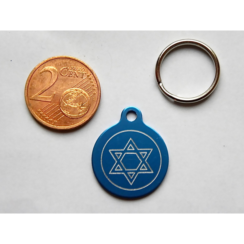 Médaille gravée ronde bleu 19 mm "étoile" pour chaton, Chiot gravure 1 face