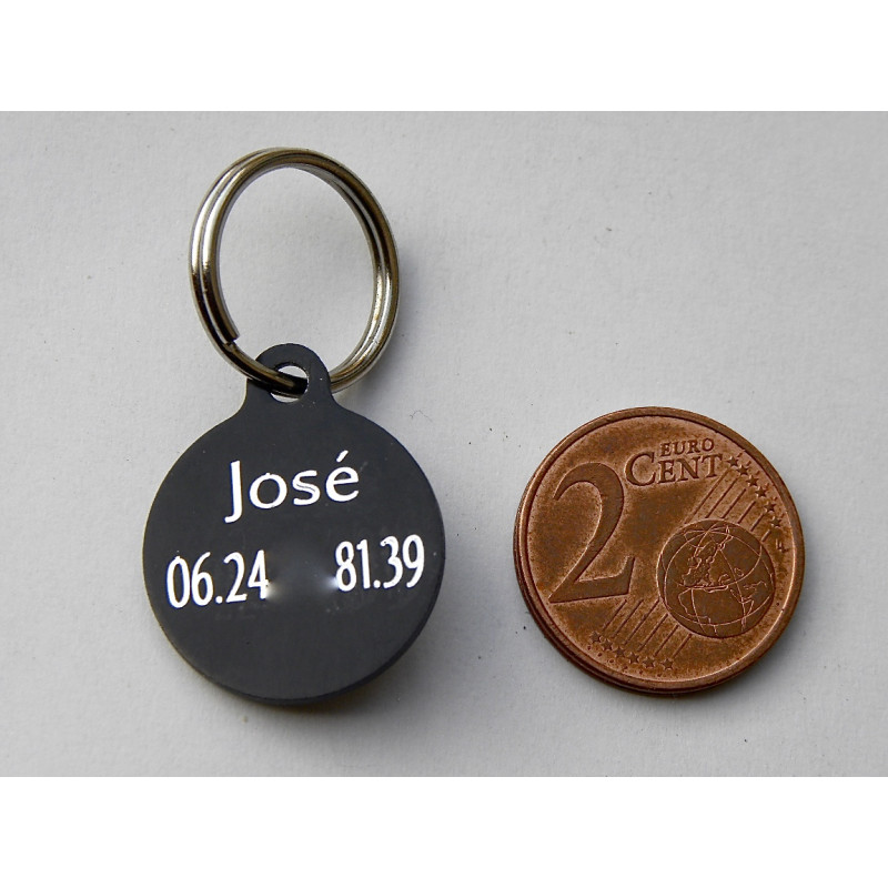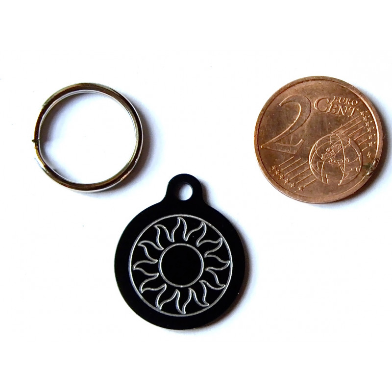 Médaille gravée ronde noire 19 mm "soleil" pour chaton, Chiot gravure 1 face