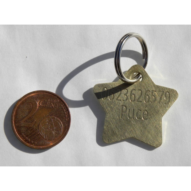 Médaille gravée chien laiton étoile (PM) personnalisable gravure 1 ou 2 faces