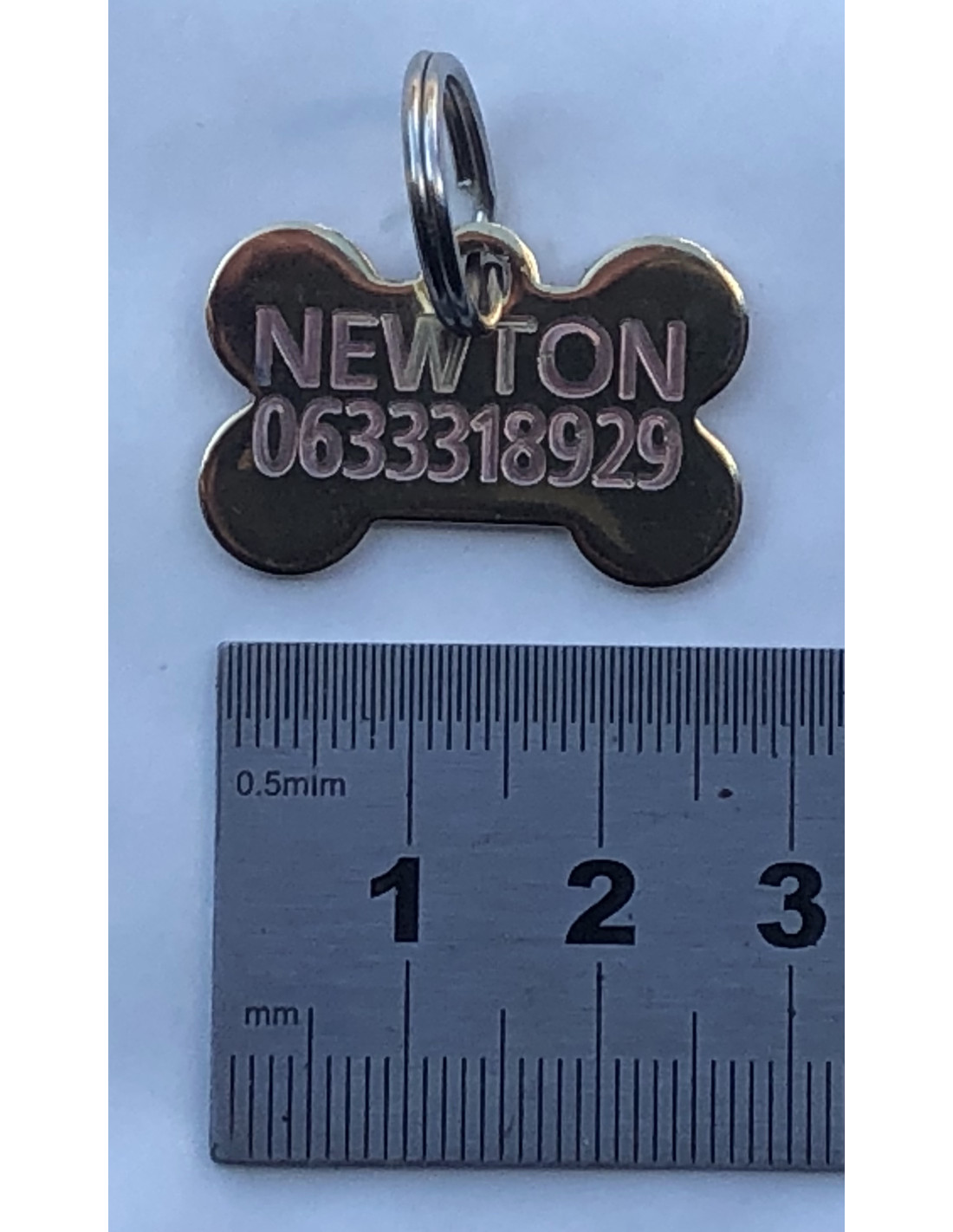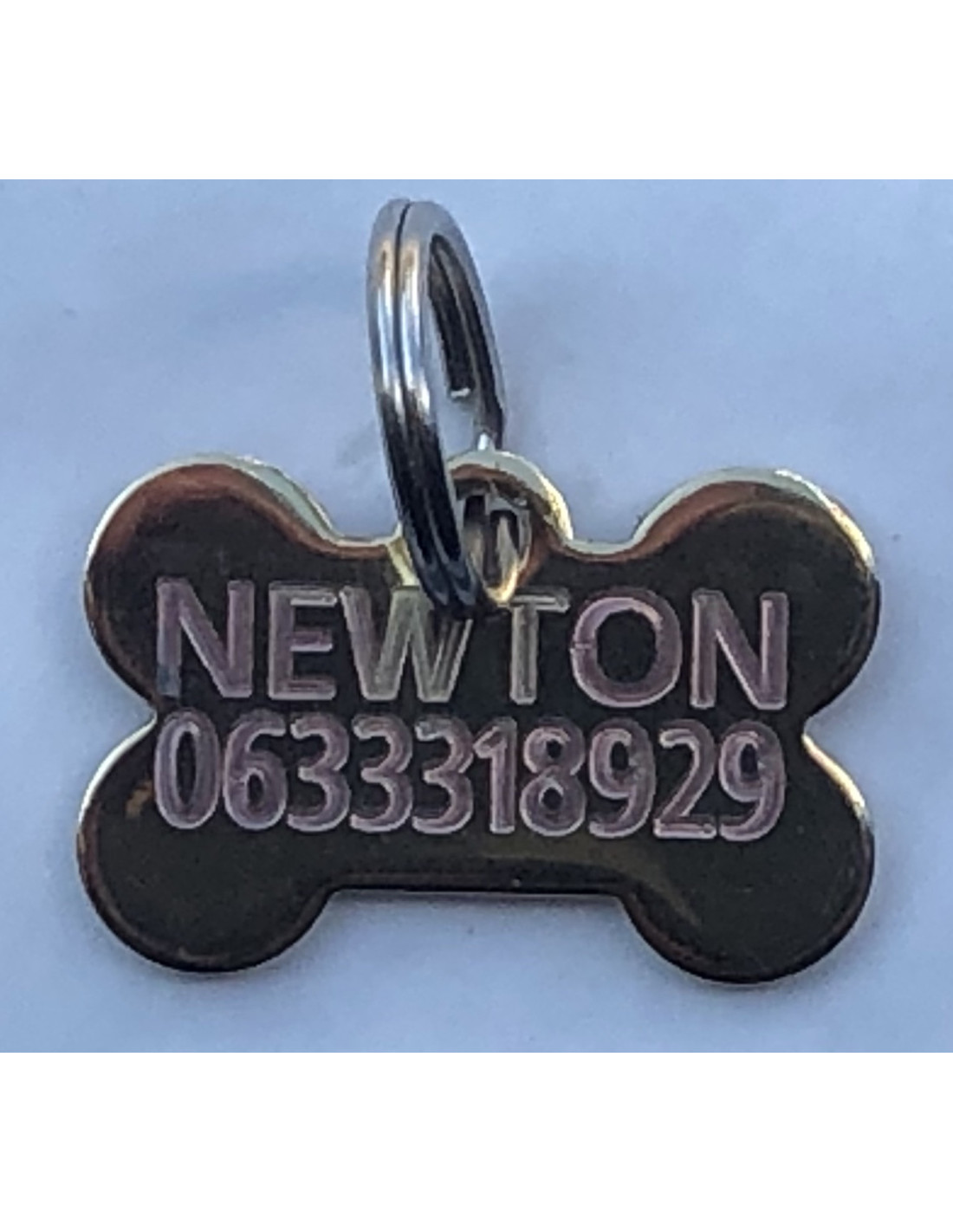 Médaille "os" laiton pour petit chien ou chiot gravure 2 faces
