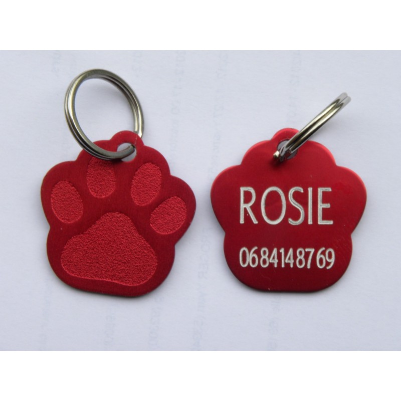 Médaille "patte" rouge grand modele pour Chien gravure 1 face