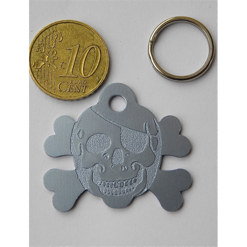 Médaille "corsaire" bleu argenté pour chien moyen gravure 1 face