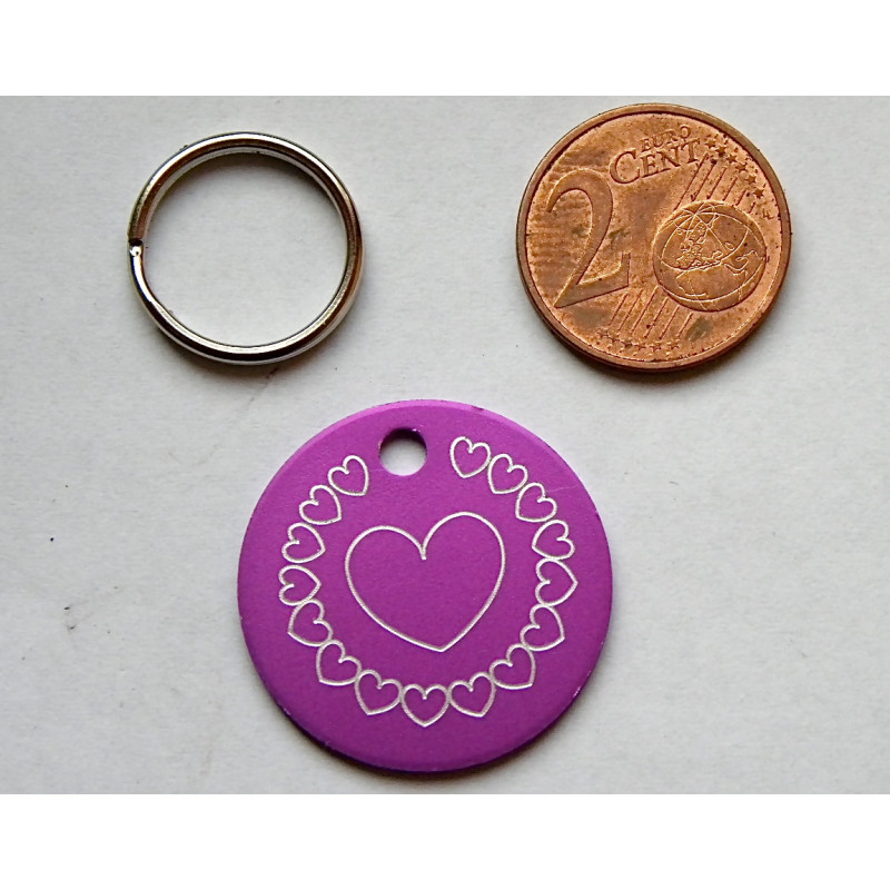 Médaille ronde "coeur" violette pour Chien moyen gravure 1 face