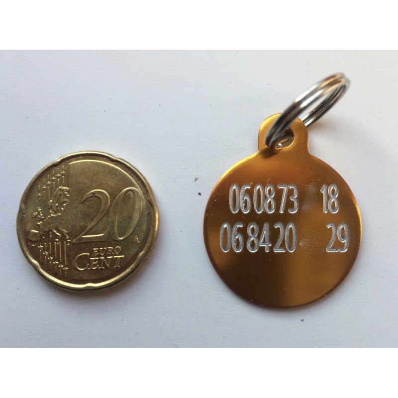 MÉDAILLE IDENTIFICATION RONDE ORANGE 25 MM POUR CHIEN MOYEN GRAVURE 2 FACES