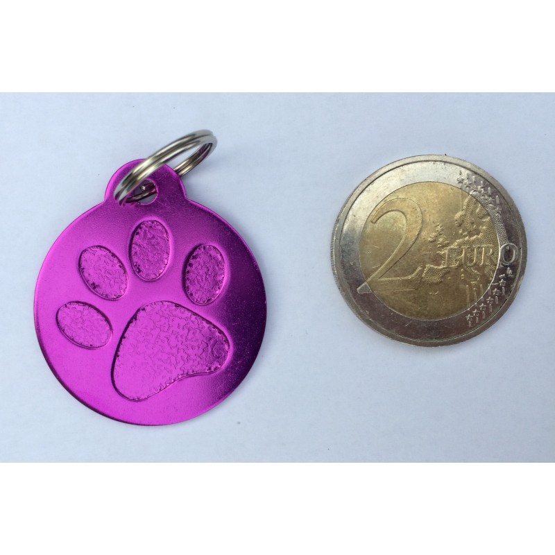 Médaille pour grand chien "patte" ronde violette gravure 1 face