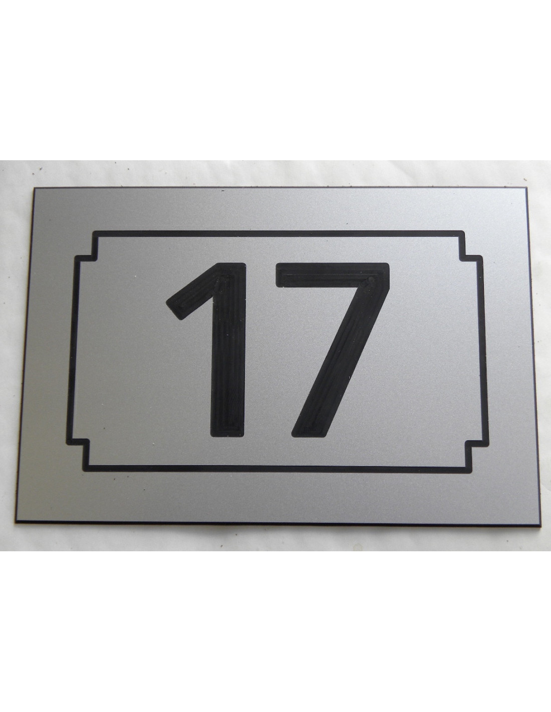 Numéro de rue, de maison plaque de rue carré argenté personnalisable 15,00 € plaque de rue personnalisable en PVC spécial anti uv comprenant 2 lignes une pour le numéro une pour l'adresse 4 formats disponibles avec ou sans adhésif et ou perçage 4 trous View
