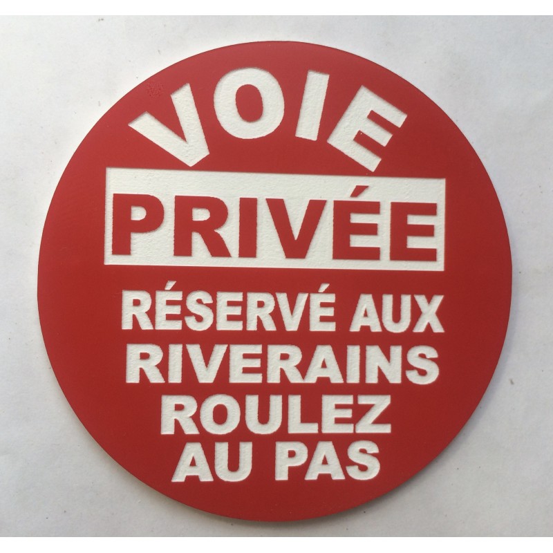 Panneau rond de signalisation Panneau rond VOIE PRIVÉE ROULEZ AU PAS 8,98 € Panneau circulaire VOIE PRIVÉE ROULEZ AU PAS diamètre 150, 200 ou 300 mm Ajouter au panier