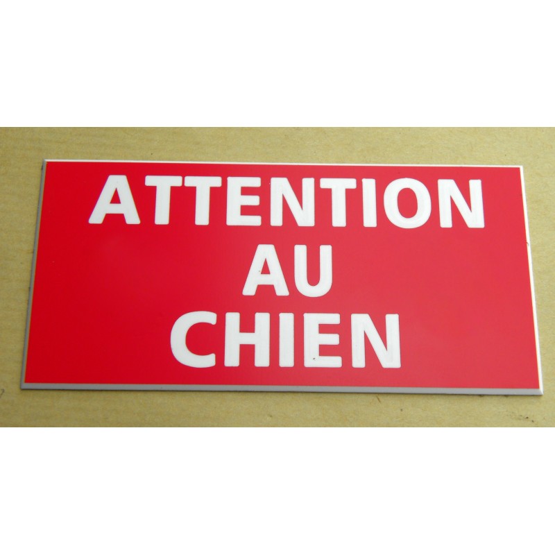 plaque attention au chien plaque gravée "ATTENTION AU CHIEN" finition biseautée format 29 x 100 mm 5,35 € plaque gravée "ATTENTION AU CHIEN" Ajouter au panier