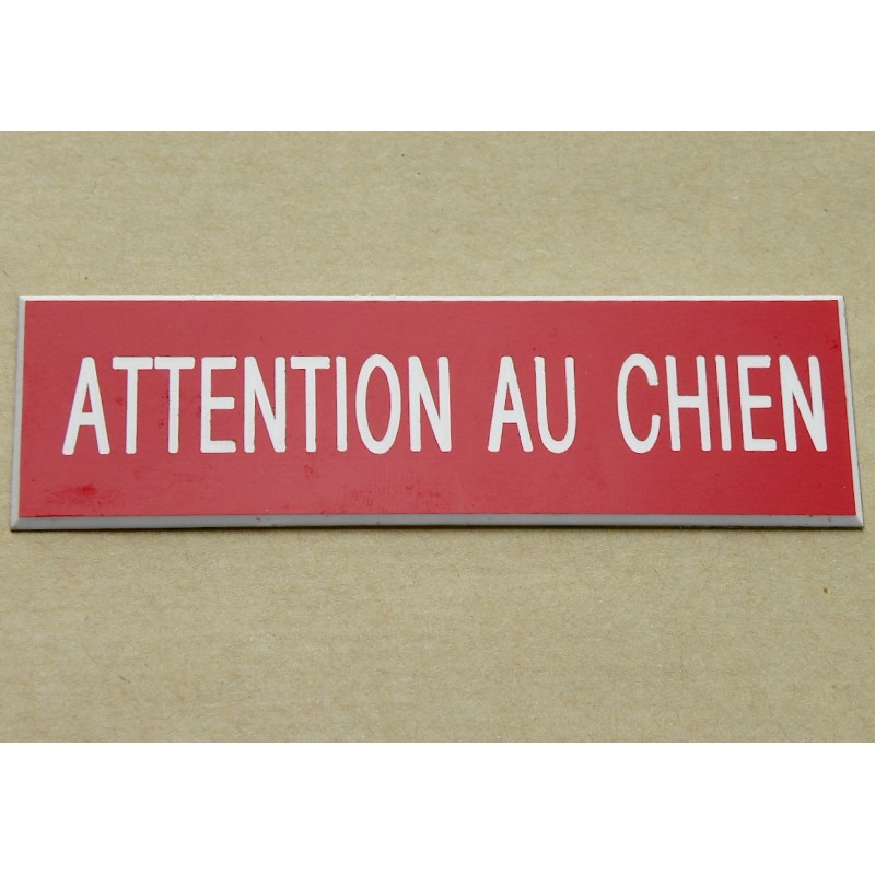 plaque gravée "ATTENTION AU CHIEN" FOND ROUGE TEXTE BLANC
