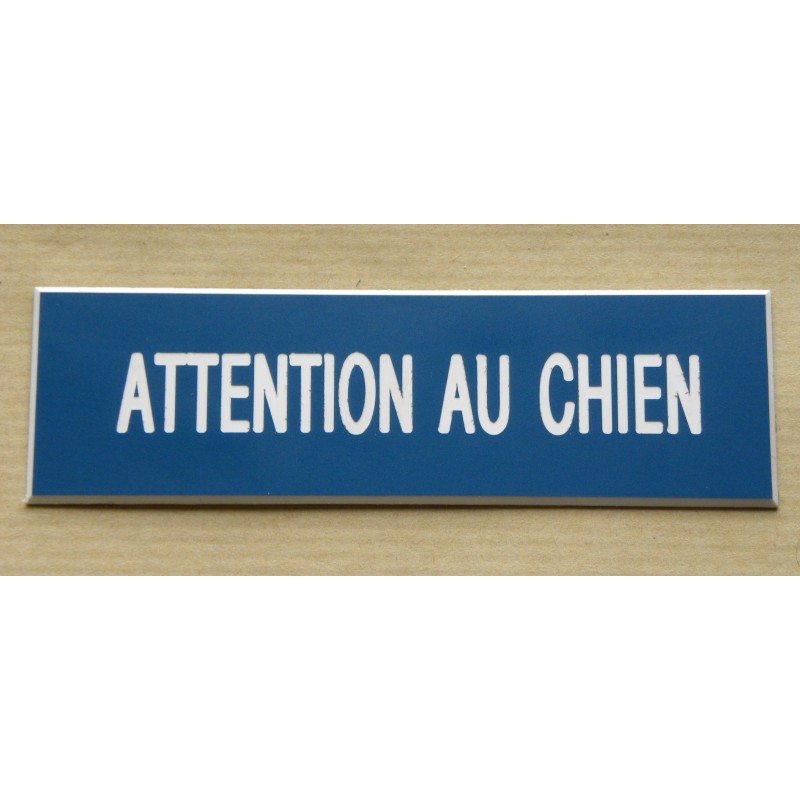 plaque gravée "ATTENTION AU CHIEN" FOND BLEU TEXTE BLANC