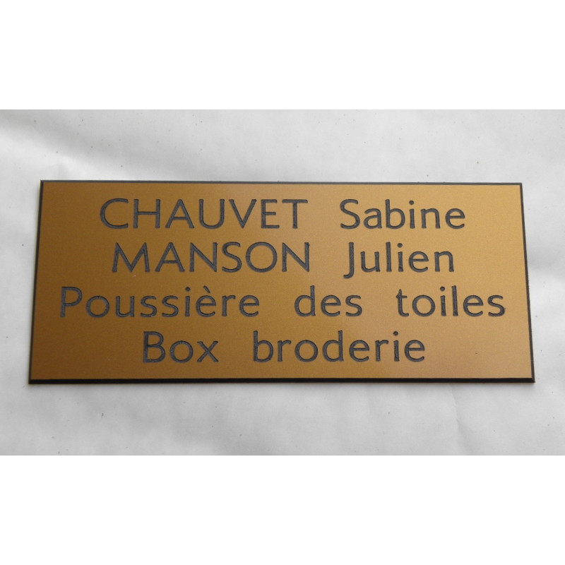 Plaque de porte format 50x120 mm plaque de porte or format 50 x 120 mm personnalisable 2 lignes 8,99 € plaque de porte dorée Personnalisable View