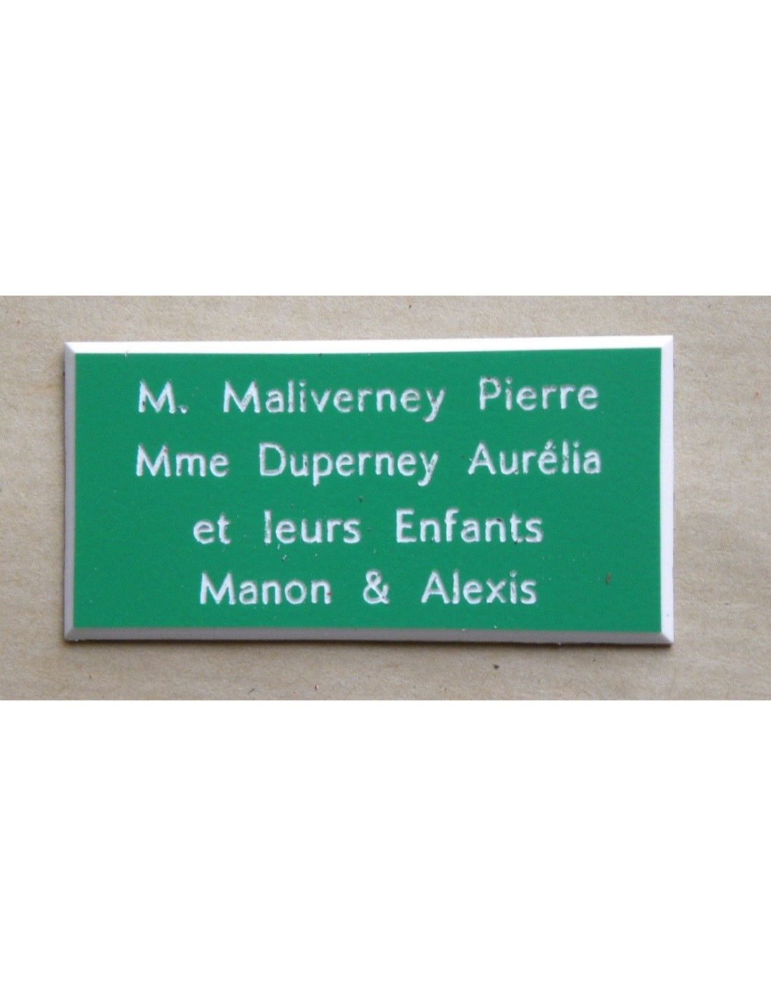 plaque de porte verte format 75x150 mm personnalisée 4 lignes