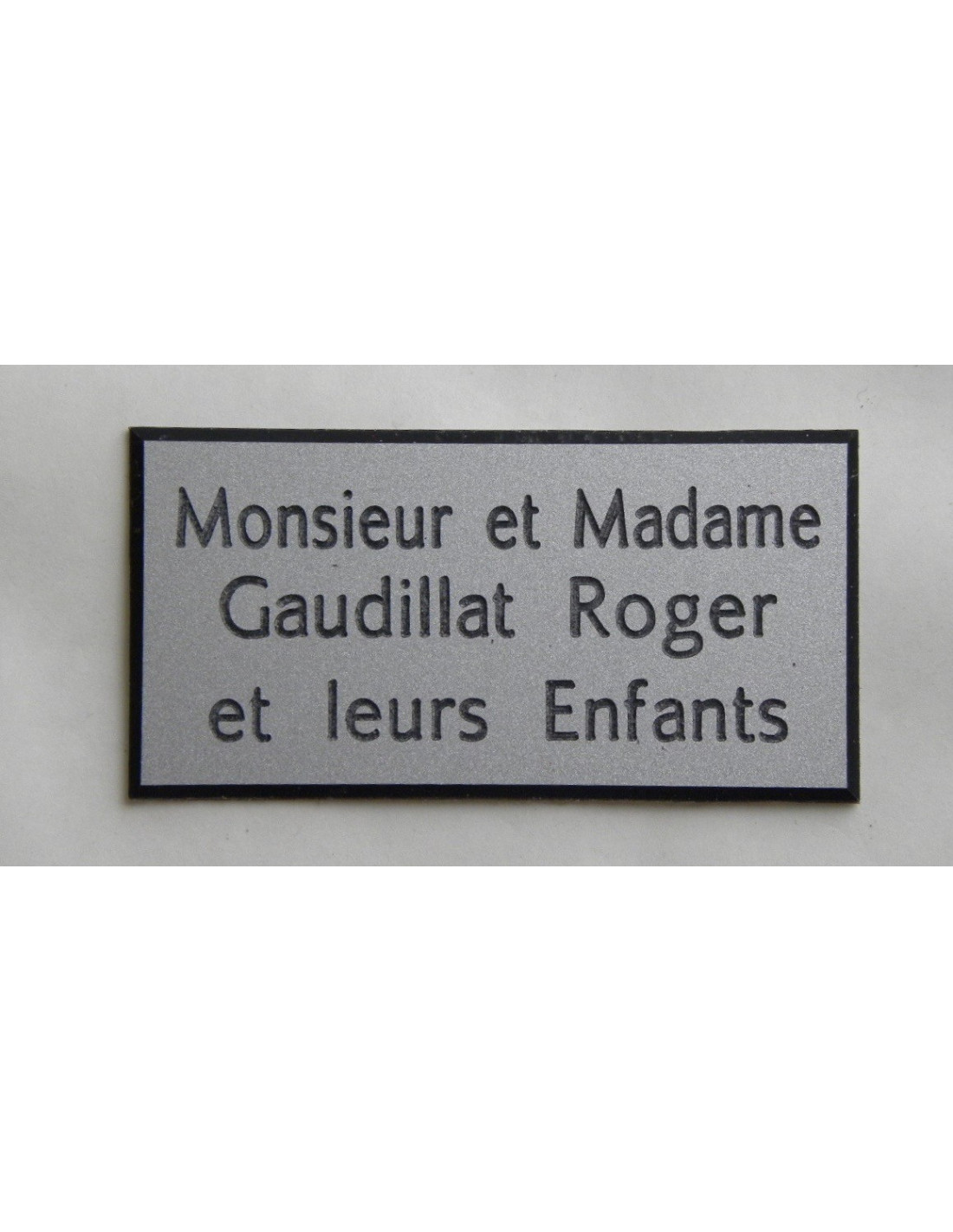 plaque de porte argentée format 75x150 mm personnalisée 3 lignes