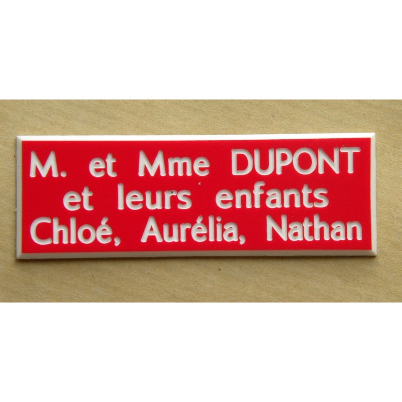 plaque de porte rouge format 50 x 150 mm personnalisable 3 lignes