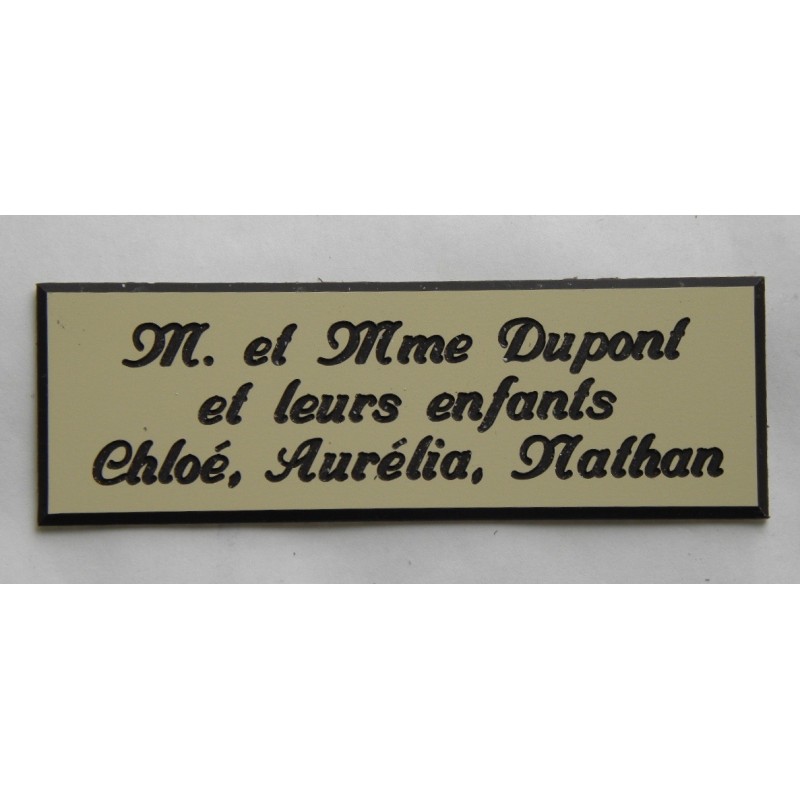 plaque de porte personnalisée "calligraphie" ivoire format 50 x 150 mm 3 lignes