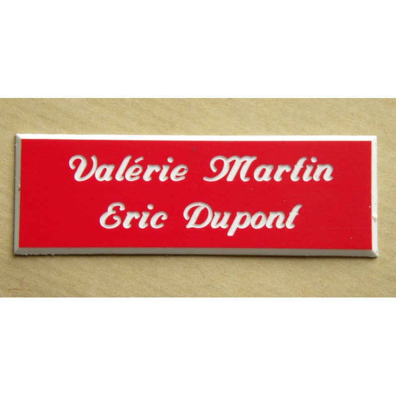 plaque de porte personnalisée "calligraphie" rouge format 50 x 150 mm 2 lignes