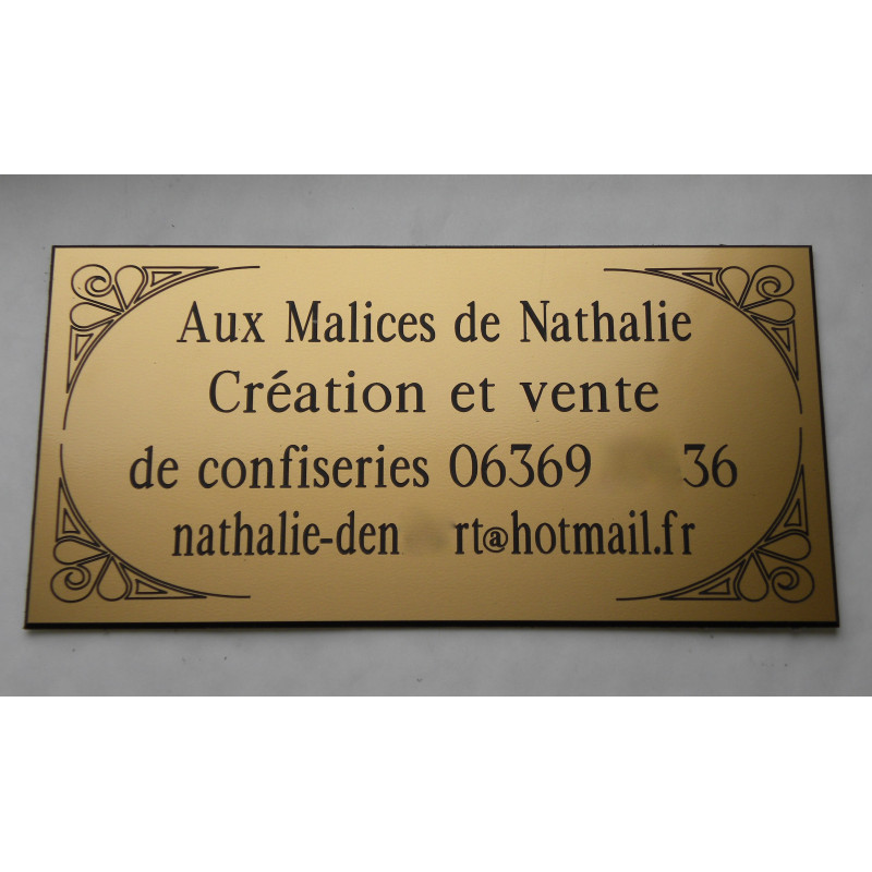 plaque de porte dorée format 48x100 mm personnalisable 4 lignes + enjolivures
