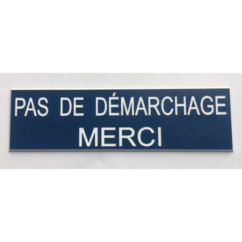 plaque adhésive PAS DE DEMARCHAGE MERCI bleue