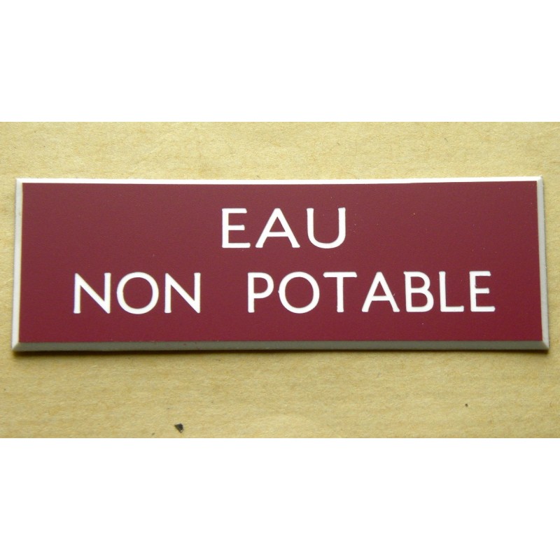 Plaque eau non potable, eau potable plaque gravée "EAU NON POTABLE" finition biseautée format 29 x 100 mm 5,35 € plaque gravée "EAU NON POTABLE" Ajouter au panier