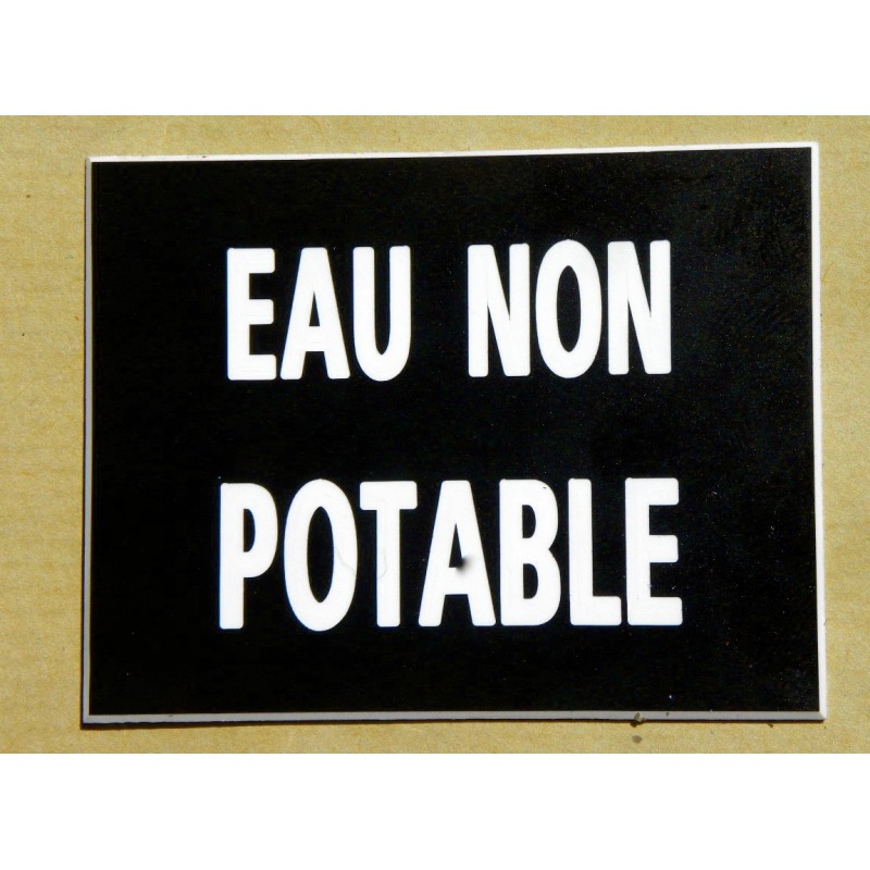Plaque eau non potable, eau potable plaque gravée, pancarte "EAU NON POTABLE" finition biseautée format 115 x 150 mm 11,99 € plaque gravée "EAU NON POTABLE" Ajouter au panier