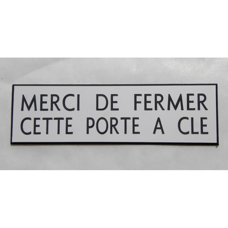 Plaque fermer la porte svp plaque adhésive "MERCI DE FERMER CETTE PORTE A CLE" blanche format 50 x 150 mm 7,99 € plaque gravée "MERCI DE FERMER CETTE PORTE A CLE" Ajouter au panier