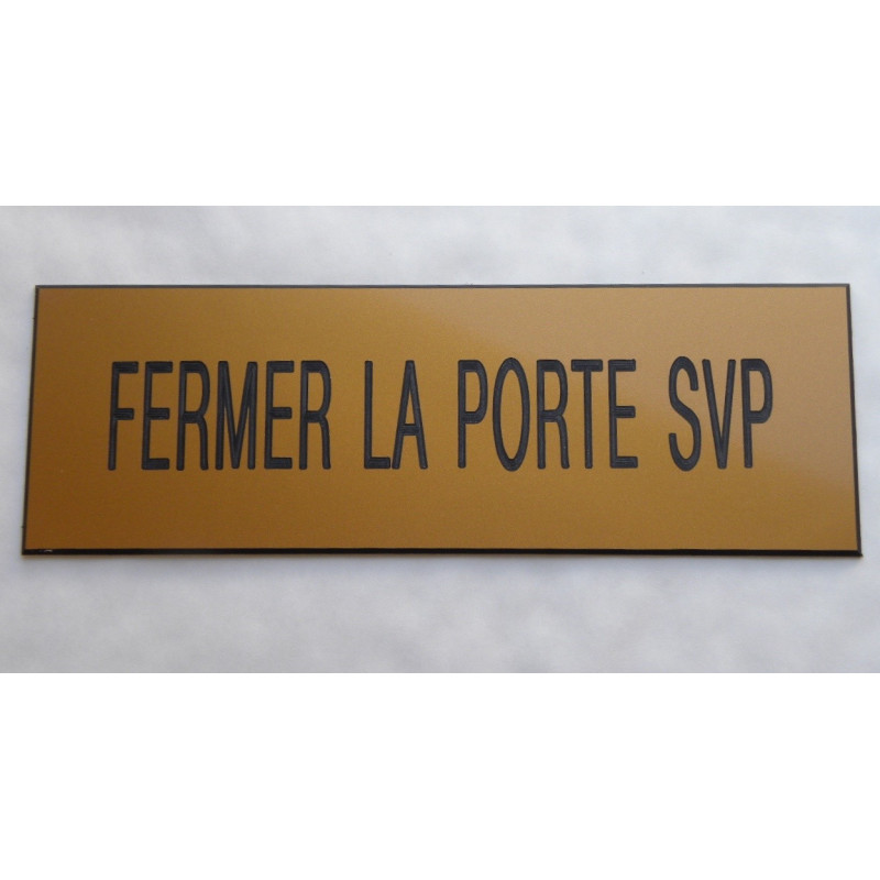 plaque gravée "FERMER LA PORTE SVP" fond OR finition biseautée format 50 x 150 mm