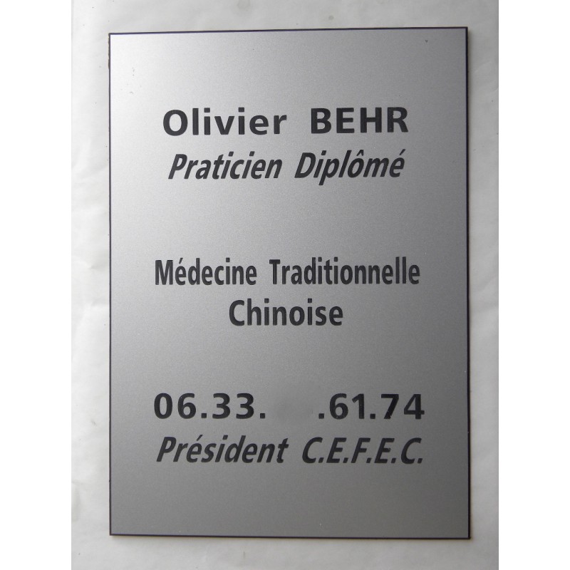 plaque professionnelle argentée 6 lignes format 170 x 120 mm