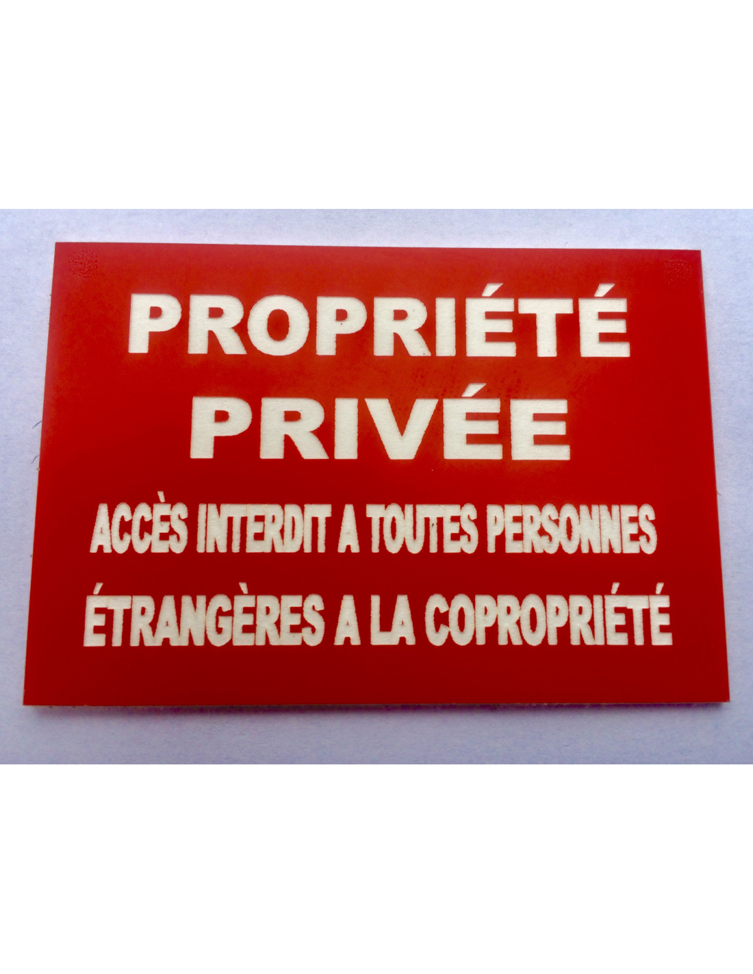 "PROPRIÉTÉ PRIVÉE ACCÉS INTERDIT A TOUTES PERSONNES ÉTRANGÈRES A LA COPROPRIÉTÉ"
