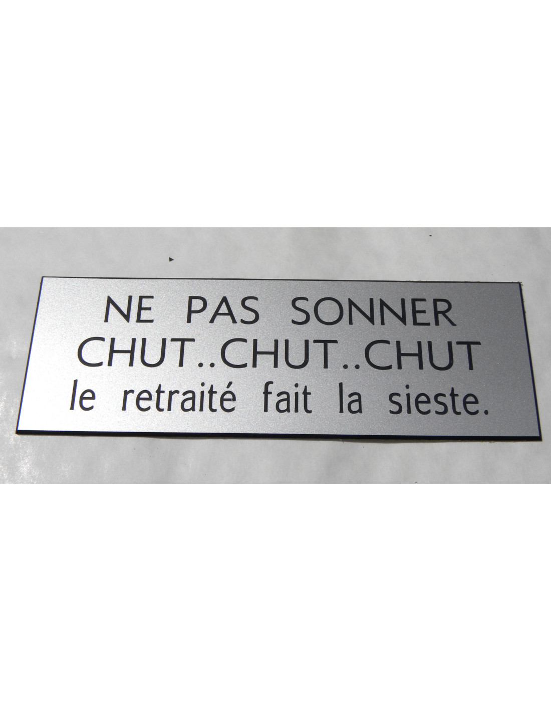 plaque "NE PAS SONNER CHUT, CHUT CHUT le retraité fait la sieste" 15 couleurs format 29 x 100 mm