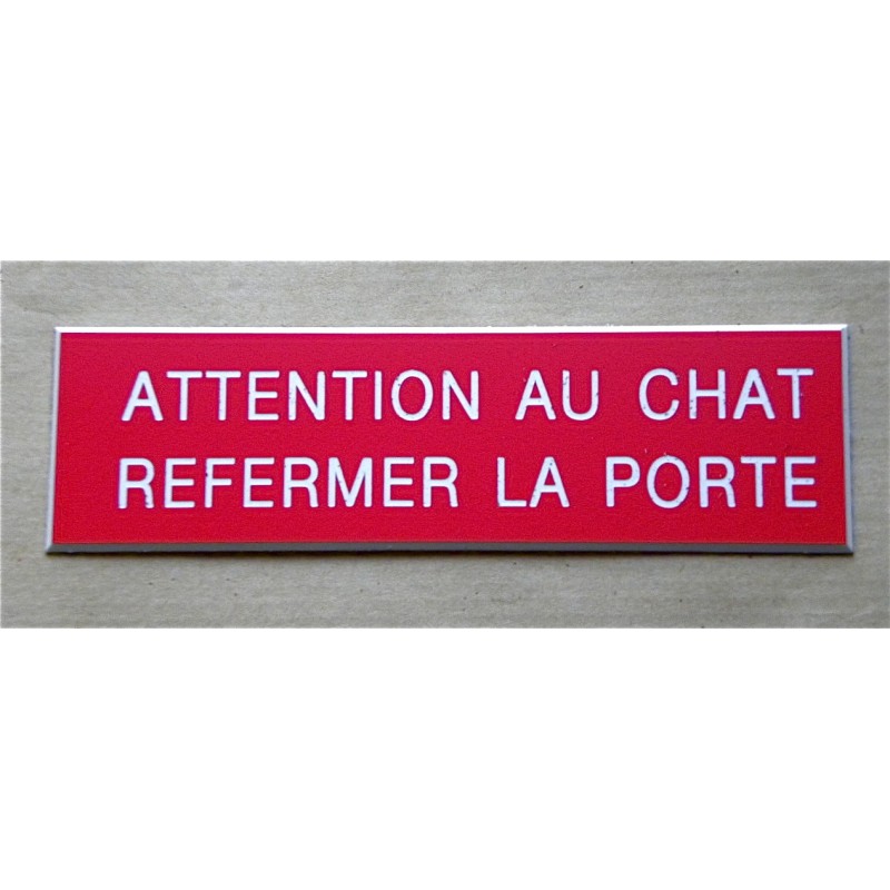 plaque adhésive ATTENTION AU CHAT REFERMER LA PORTE rouge